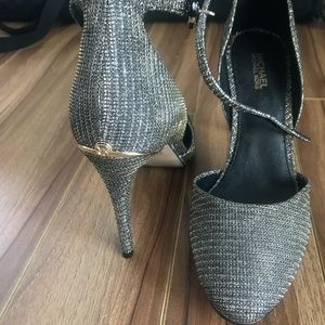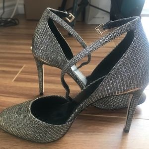 Sparkly silver colour with flecks of gold which show through depending on light.