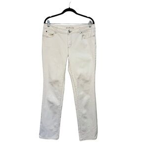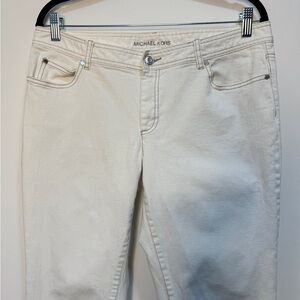 Keywords: Michael Kors jeans, cream denim, straight leg jeans, MK logo pants, casual neutral jeans