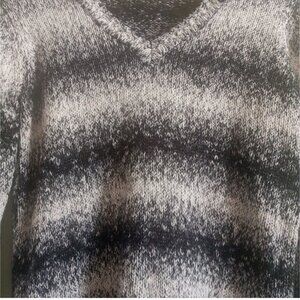 Excellent condition, black/white stripe, v-neck Size Smallpit to pit measures 19"length from top of shoulder to bottom hem is 29"
