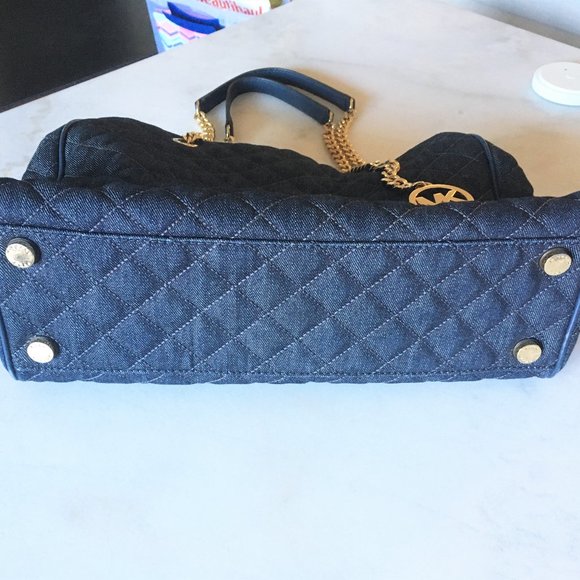 Michael Kors Susannah large tote dark denim navy gold chain strap quilted purse