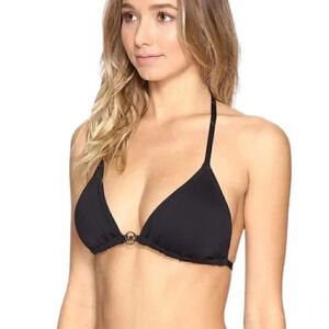 Michael Kors Triangle Bikini Top Black Gold Size Medium