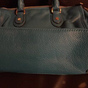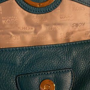 Michael Kors Turquoise Fulton Gold Logo Pebbled Leather Satchel Handbag