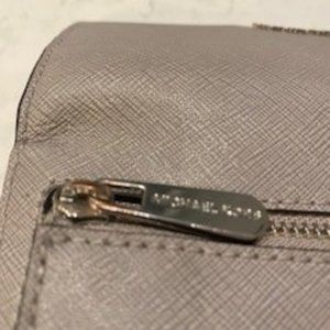 Sleek wallet is crafted from textured Saffiano leather and finished off with the signature gold plated Michael Kors logo.