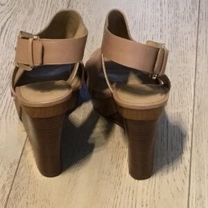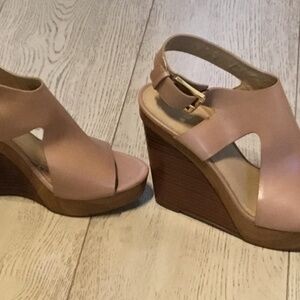 Gorgeous tan coloured Michael Kors wedge sandals with gold buckle. Only wore once, inside.
