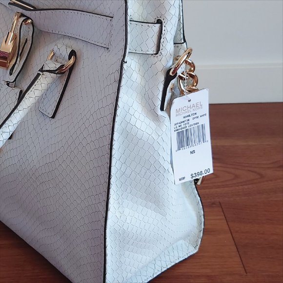 Michael Kors White Genuine Leather Snake Print Hamilton Handbag Tote