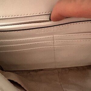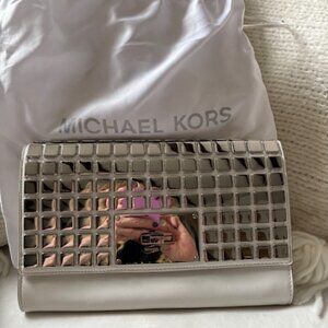Michael Kors white leather clutch with silver mirrored squares. Great condition!