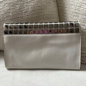 Michael Kors White/Silver Natalia Tile Mirror Stud Clutch