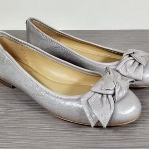 Michael Kors Willa Ballet Flat, Gray Wrinkled Leather, Womens Size 5.5 / 35.5