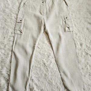 Check out this Michael Kors Woman's Cream 100% Linen Cargo Paints in excellent pre-owned condition, no rips or stains on it.