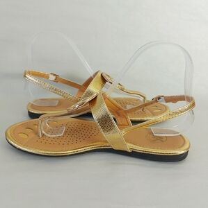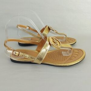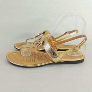Michael Kors Women Gold Leather Sandals Thong Flat Casual Comfy Breathable