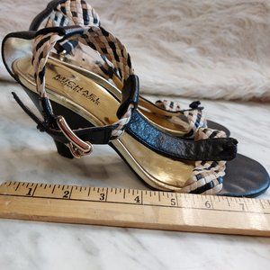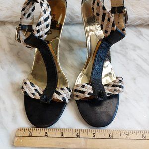 Michael Kors Women's Black Weaving Strapped High Heel Open Toe Sandals Siz 8M