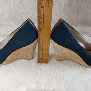 Michael Kors Women's Blue Gold MK Espadrille Wedge Peep Toe Sandals 6 1/2M
