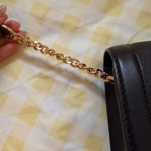 Made of Leather, adjustable strap, gold-tone exterior hardware & one back slip pocket