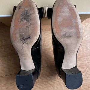 Stacked block heel with a girly bow across vamp.