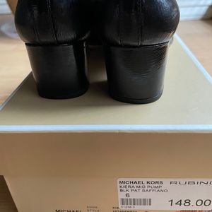 Michael Kors Women's Kiera Mid Pump Black Patent Saffiano