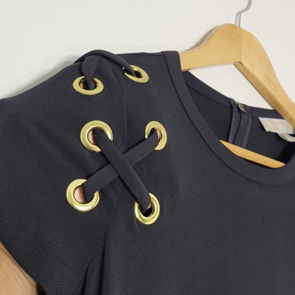 Michael Kors Women's Navy Blue Cap Sleeve Grommet Lace Up Cocktail Midi Dress S