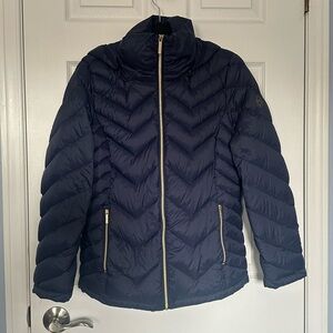 Michael Kors Women’s Packable Down Fill Navy Chevron Puffer Jacket | EUC