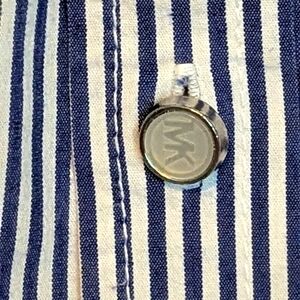 Michael Kors Women's (Size 0) Blue & White Striped Button-Down Blouse
