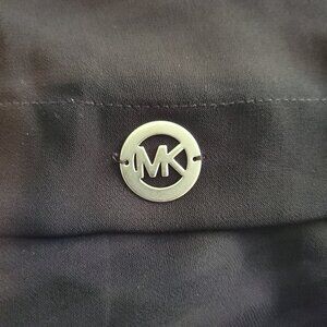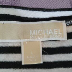 Black and white striped Michael Kors Women's sleeveless top with sheer black detailing at the bottom. Size: Large. In excellent used condition.