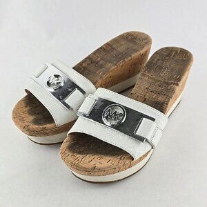 Michael Kors Women's White Wedge Cork Wedge Platform Slip On Sandal Size 6.5M
