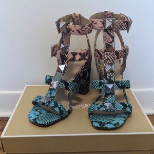 Michael Kors Wren Studded Ombré Snake Embossed Leather Sandal 10