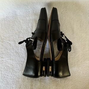 Detailed silver tone metallic strip on the heals