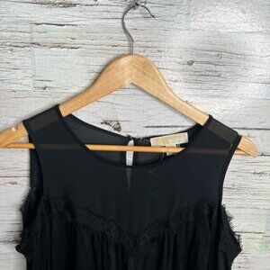 Michael Kors black blouse lace sheer long sleeve blouse open shoulder medium