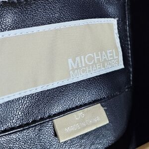 Michael Kors jacket, Michael Kors moto jacket, black faux leather trim coat, women’s size L jacket, bouclé moto jacket, biker jacket style, chic edgy outerwear, fall winter jacket, Michael Michael Kors outerwear, zip up moto jacket, stylish black coat, designer jacket Canada, trendy faux leather jacket, MK moto chic, statement jacket for women, layering piece, modern moto coat, luxury fashion jacket, Michael Kors women’s clothing.
