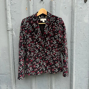 A nod to bohemian style, this fitted blazer is designed in a botanical print that enlivens the luxe velvet construction.