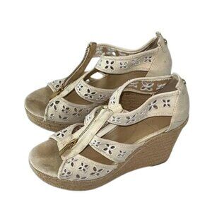 Michael Kors cream Damita cutout front zip wedge sandals size 36.5