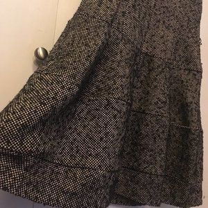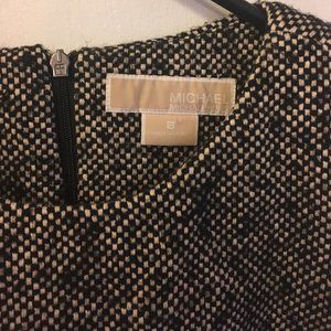 Michael Kors wool blend, drop waist, bell shaped skirt, sleeveless dress, size 8. Dress has a back zip & belt loops but no belt. Very beautiful quality, lined and heavy fabric but no stretch! Black & beige, super classy!