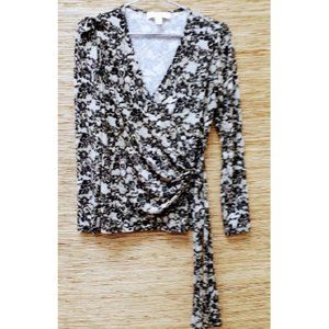 Brand New - black and white Michael Kors floral wrap style top. Size small