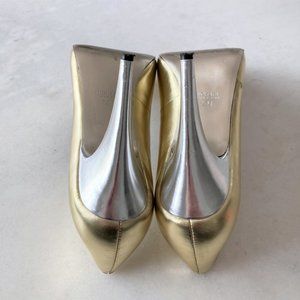 Michael Kors gold & silver leather high heel shoes / pumps, shiny metallic v toe
