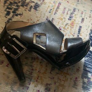 Black heals. Very comfortable, when looking close they have wear and tear.