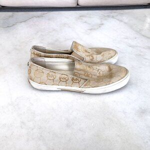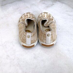 Michael Kors logo slip on sneaker / canvas shoe (tan beige cream white) print
