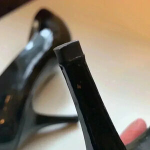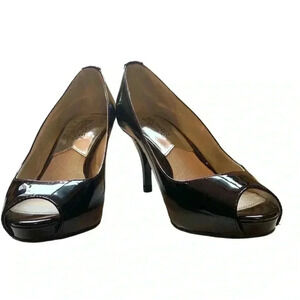Michael Kors, peep toe patent leather shoe, 3” heel and a 1” hidden pla…