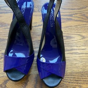Sexy platform 4" heel sandals with 1" platform. Gorgeous Blue front. Worn once indoors. in excellent condition.