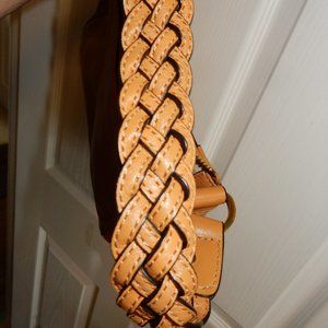 really nice Michael Kors shoulder bag, it has beautiful braided leather straps & accents. In good condition, slight wear throughout & small marks inside, tan leather.
