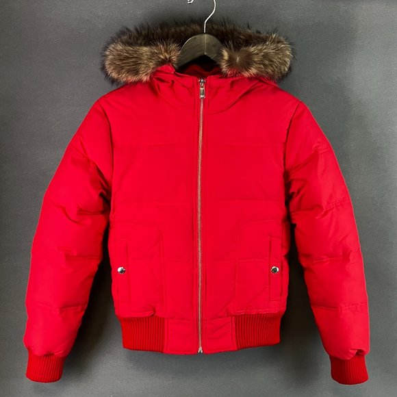 Michael Kors red bomber down jacket, really good condition, worn only few times. Filling is 80% down 20% feathers, trim is racoon fur. Size xs.