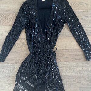 fully sequined black wrap dress - perfect for holiday events and parties.