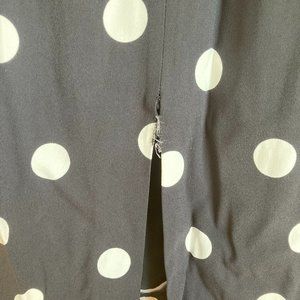 Polka dot Michael Kors shift dress, size 6, black and white, middy length with wide patent belt. Seaming at the waist - front and back - makes a beautiful shape. Worn once, in great shape. Tiny tear at the vent in the back.