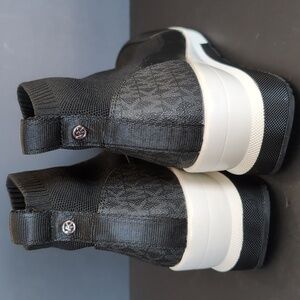 Michael Kors Skyler black/white stretch knit sock sneaker.