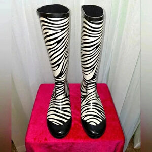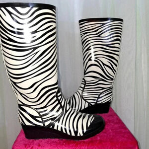 Michael Kors zebra print wedge heel rain boots. excellent condition. size 39 or 8 us.(last pic is of 2 small scrapes) rare find!