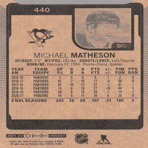 Michael Matheson - 2021/2022 O Pee Chee Hockey Card