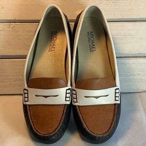 - gold MK logo at center - 1/2" Heel - man made upper, rubber sole - slip on style