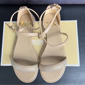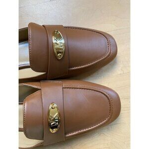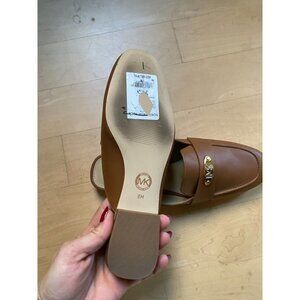 Michael Michael Kors BNWT "Ashley" tan brown logo plate mules women NEW
