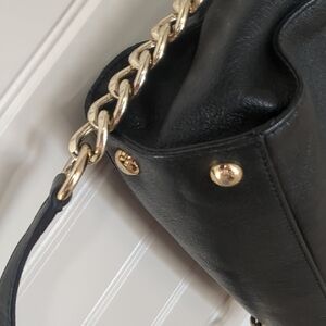 Michael Michael Kors Black Leather Handbag with Gold Accents