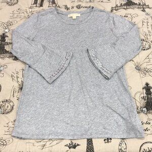 Gleaming chain embellishments accent each cuff on this 3/4-sleeve top from Michael Michael Kors.
