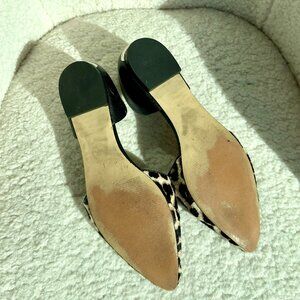 Black leather heel, light animal hair at pointed toe