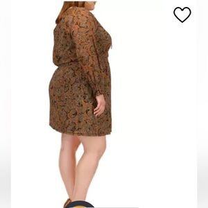 Michael Michael Kors Mesh Paisley Peasant V-Neck Long Sleeve Mini Dress sz 3X